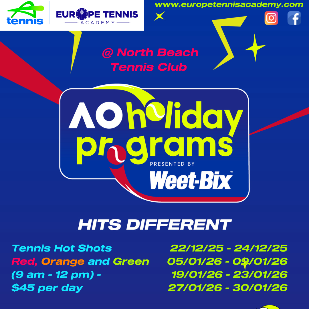 The Europe Tennis Academy holiday clinics are a great way to keep practising over the school holidays. We offer clinics for all levels of coaching including Red Ball, Orange Ball, Green Ball and Yellow Ball. These clinics are great fun and will teach your kid the basic principles of tennis.